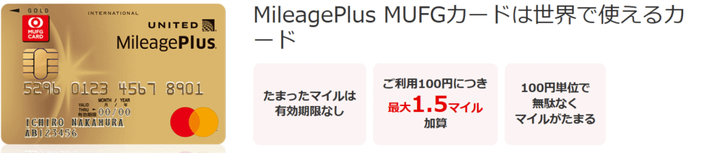 マイレージプラスMUFGカード(金色に輝いていますがこの名前です)